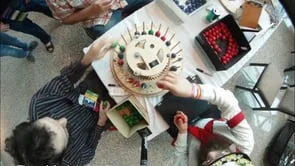 Quarturn is a prototype game in which players compete to place four consecutive beads on a constantly rotating board.